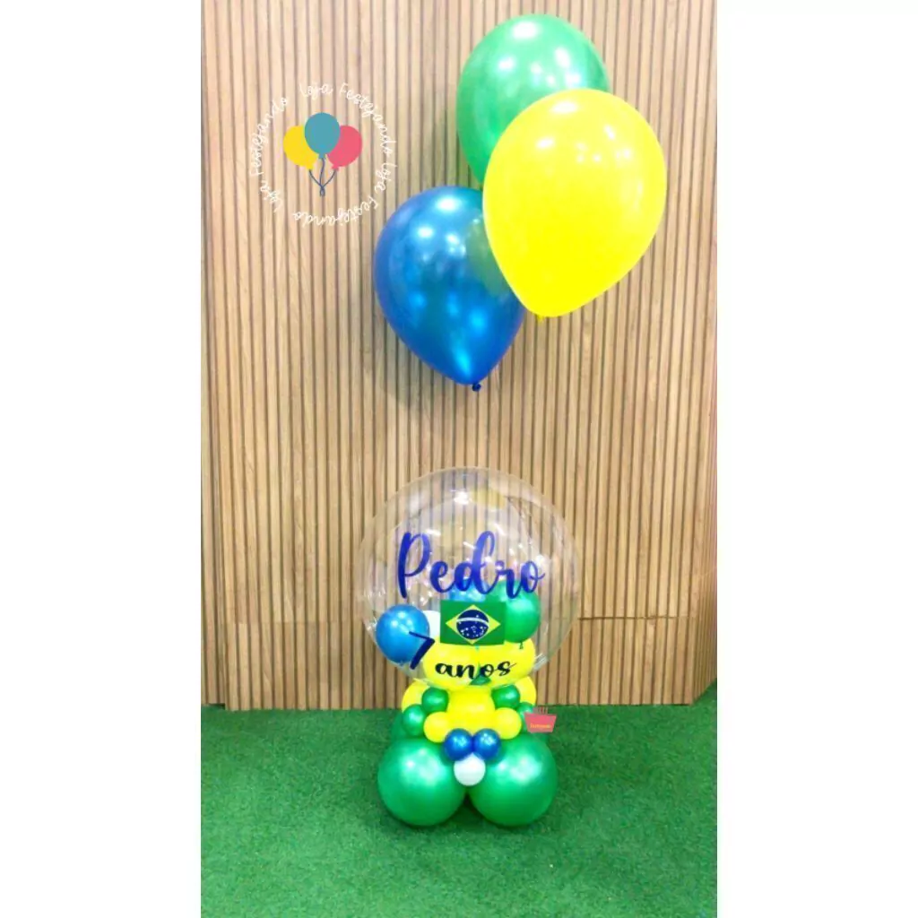 BALÃO BOLHA PERSONALIZADO COM BASE PARA MESA- FUTEBOL/BRASIL
