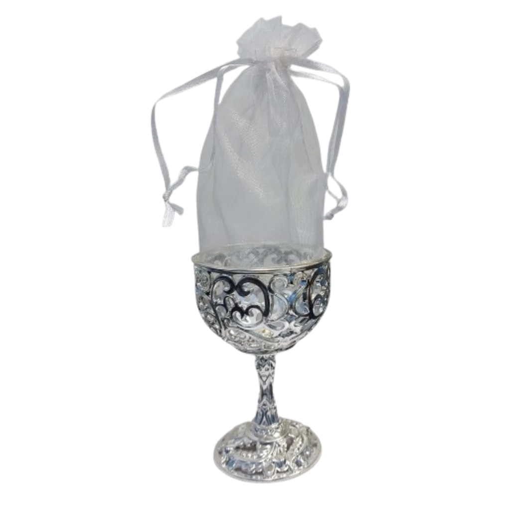 CASTIÇAL DE ARABESCO PRATA COM ORGANZA - 5423