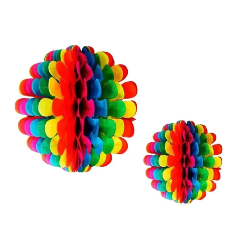 Enfeite flor nas cores do arco-íris em formato de sanfona.